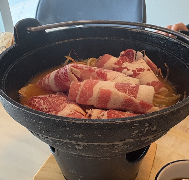 하지만 저희는 따뜻한것을 원해서 솥밥전골세트로 우삼겹 샤브전골을 각각 선택했고 간장육수와 얼큰육수로 각각 주문했습니다.