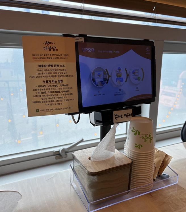 자리에 앉으면 전자 키오스크가 테이블에 있어서 주문을 할 수 있어서 편리했는데요.