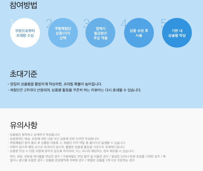 또한 이런 체험단은 사용자가 별도로 신청하는 방식이 아니라, 쿠팡이 활동이 활발한 리뷰어를 초대하는 방식입니다 .😊