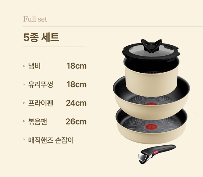 특히 제가 본 세트를 구매한 것은 냄비와, 궁중팬 그리고 일반 프라이팬 모두 5가지 구성을 한세트로 저렴하게 구매가 가능해서 선택했습니다. 손잡이는 아쉽게도 하나만 옵니다.