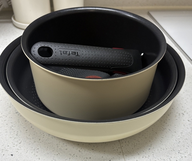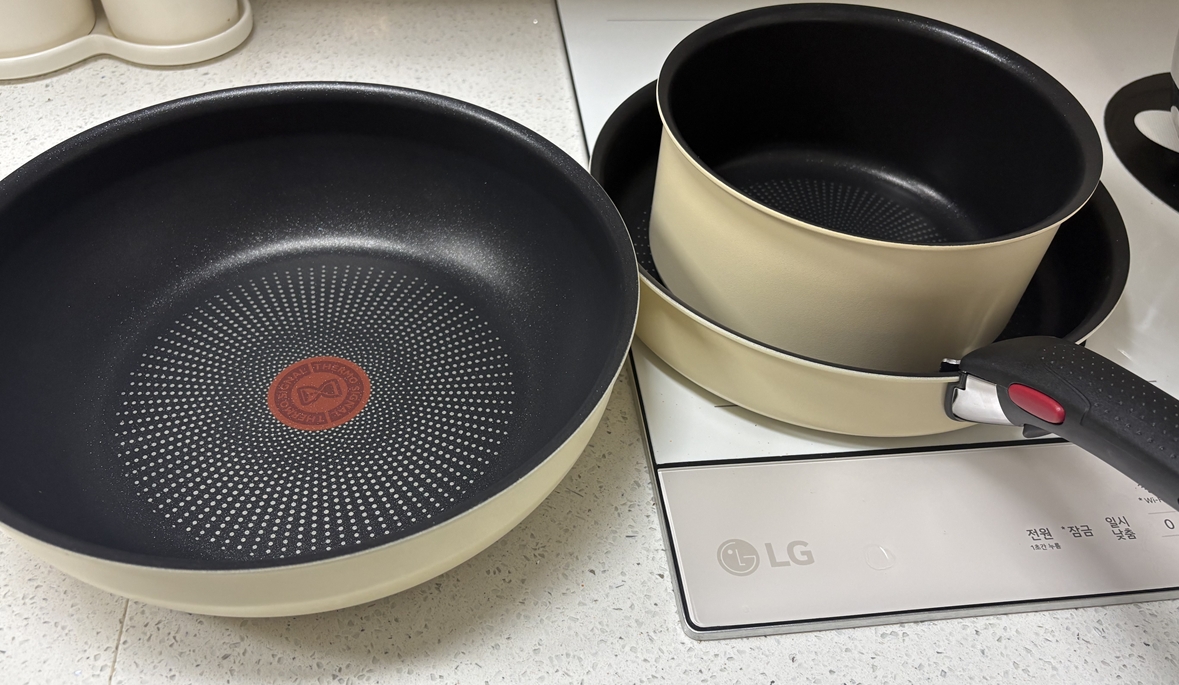 테팔 특유의 깔끔한 디자인에 은은한 파스텔 버터색이 더해져 주방이 훨씬 따뜻한 분위기로 변하는 느낌이 드는 제품이라서 선택하기 간편했습니다. 😊