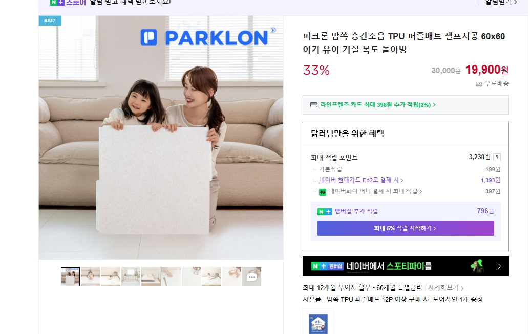 장당 만원대에 구매가능한 셀프시공 가성비좋고 품질좋은 파크론 맘쏙 퍼즐매트 (+가격정보)