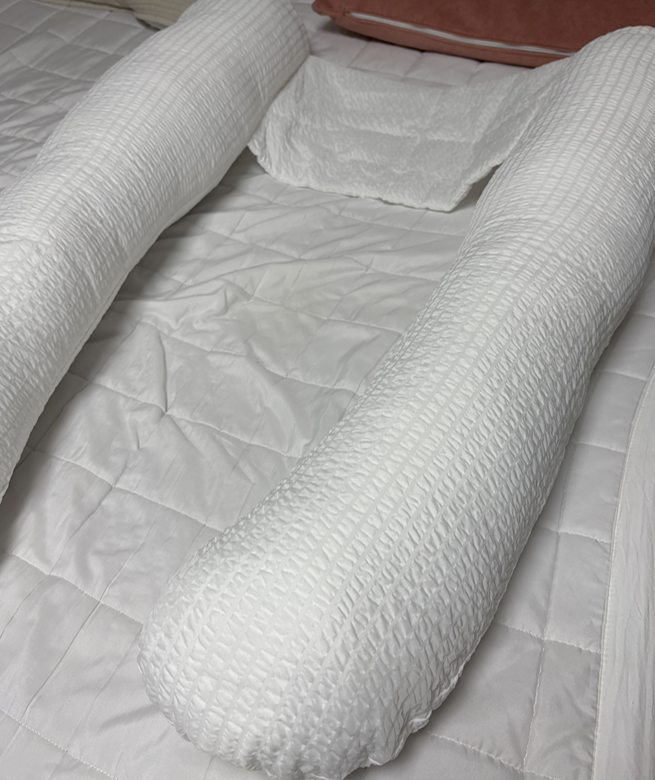 옆으로 누워 자야 하는 임산부에게 안정적인 자세를 유지시켜줘 뒤척임을 줄여주기도 하고, 출산 후에도 수유 쿠션이나 일반 바디필로우로 활용할 수 있어 실용성이 뛰어나기도 한데요.