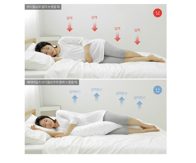 바디필로우를 사용해서 압력분산으로 편안한 숙면이 가능한 바디필로우 해피테일즈(+사진)