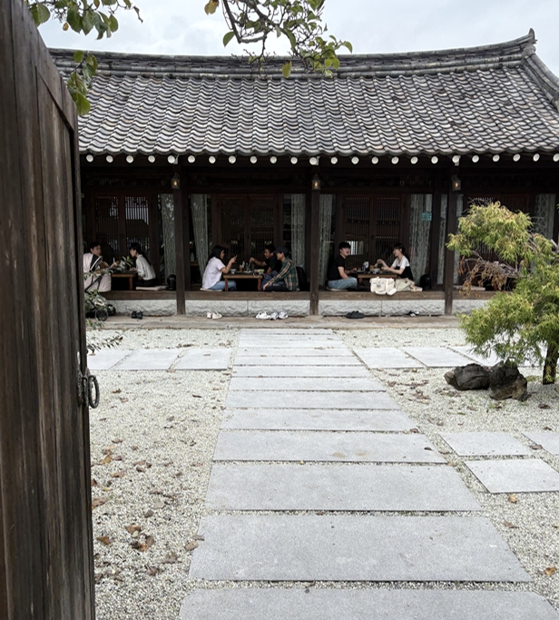 무엇보다 한옥 분위기에서 감성까지 잡고있으면서 야외에 걸터앉아 식사까지 할 수 있어서 감성을 느낄 수 있는 곳이었는데요.