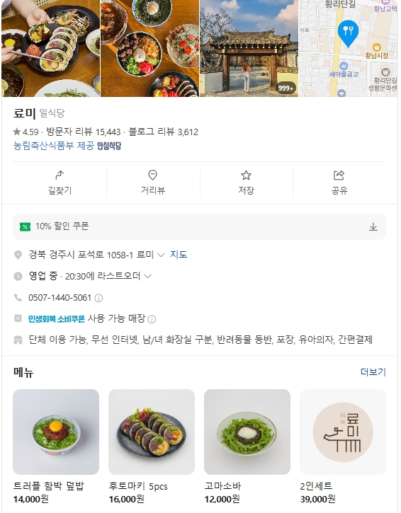 무려 블루리본만 5년연속 5개, 경주 황리단길 맛집 료미 (+외관사진)