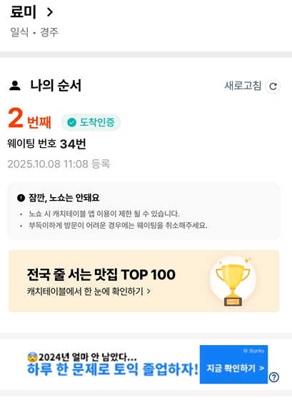 내 순서가되면 어플에서 입장해라는 알림이 오니 그때 방문하시고 내 웨이팅 번호를 알려주시면 됩니다.