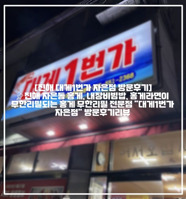 [진해 대게1번가 자은점 방문후기]📌진해 자은동 홍게, 내장비빔밥, 홍게라면이 무한리필되는 홍게 무한리필 전문점 “대게1번가 자은점” 방문후기리뷰 (+진해 홍게 맛집 추천, 진해 대게맛집 추천, 진해 붉은대게 맛집 추천, 진해 무한리필 맛집 추천, 진해 자은동 맛집 추천, 진해 홍게무한리필 추천) 안녕하세요 여러분, 대게 좋아하시나요? 😊 경남 진해 자은초등학교 바로 근처 자은동 인근에는 홍게를 무한리필로 내어주는 맛집으로 알려진 곳이 …