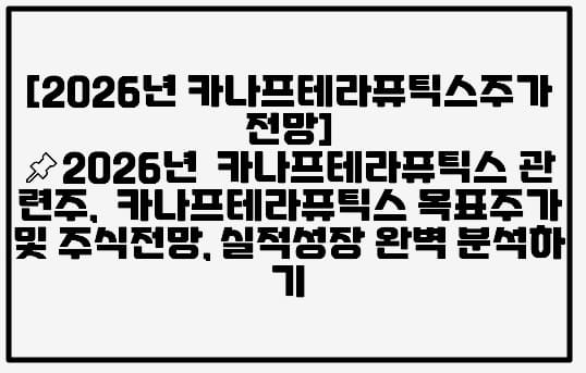 [2026년 카나프테라퓨틱스주가전망]📌2026년 카나프테라퓨틱스 관련주, 카나프테라퓨틱스 목표주가 및 주식전망, 실적성장 완벽 분석하기 (+ 카나프테라퓨틱스 주식전망,…