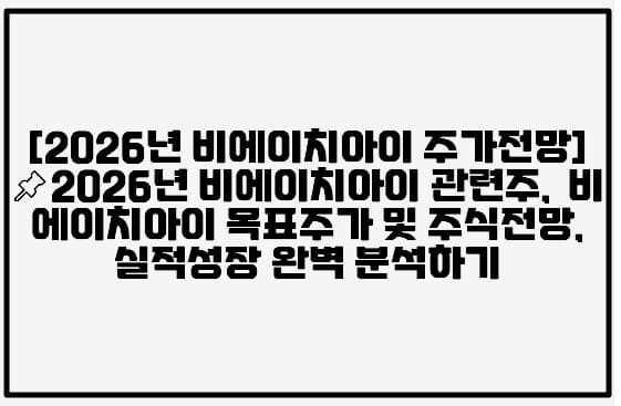 [2026년 비에이치아이 주가전망]📌2026년 비에이치아이 관련주, 비에이치아이 목표주가 및 주식전망, 실적성장 완벽 분석하기 (+ 비에이치아이…