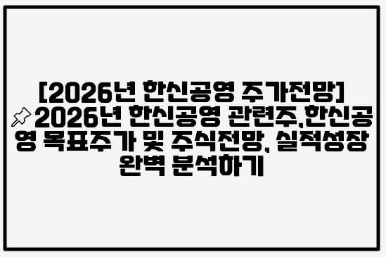 [2026년 한신공영 주가전망]📌2026년 한신공영 관련주,한신공영 목표주가 및 주식전망, 실적성장 완벽 분석하기 (+한신공영 주식전망, 한신공영 주가전망,…