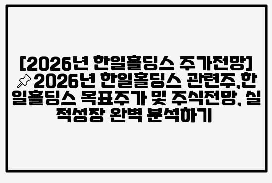 [2026년 한일홀딩스 주가전망]📌2026년 한일홀딩스 관련주,한일홀딩스 목표주가 및 주식전망, 실적성장 완벽 분석하기 (+한일홀딩스 주식전망, 한일홀딩스 주가전망,…